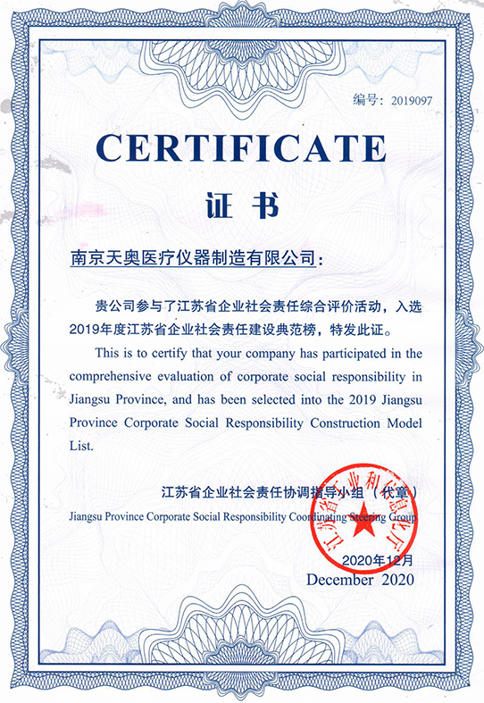 2020年12月南京天奧參與了江蘇省企業(yè)社會(huì )責任綜合評價(jià)活動(dòng)
